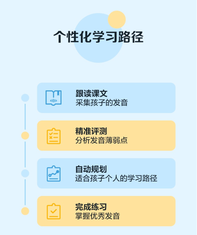 五个步骤形成了良好的学习循环,让孩子的口语学习事半功倍,有效避免只学不练、学习无规划等问题,让口语提升看得见。
