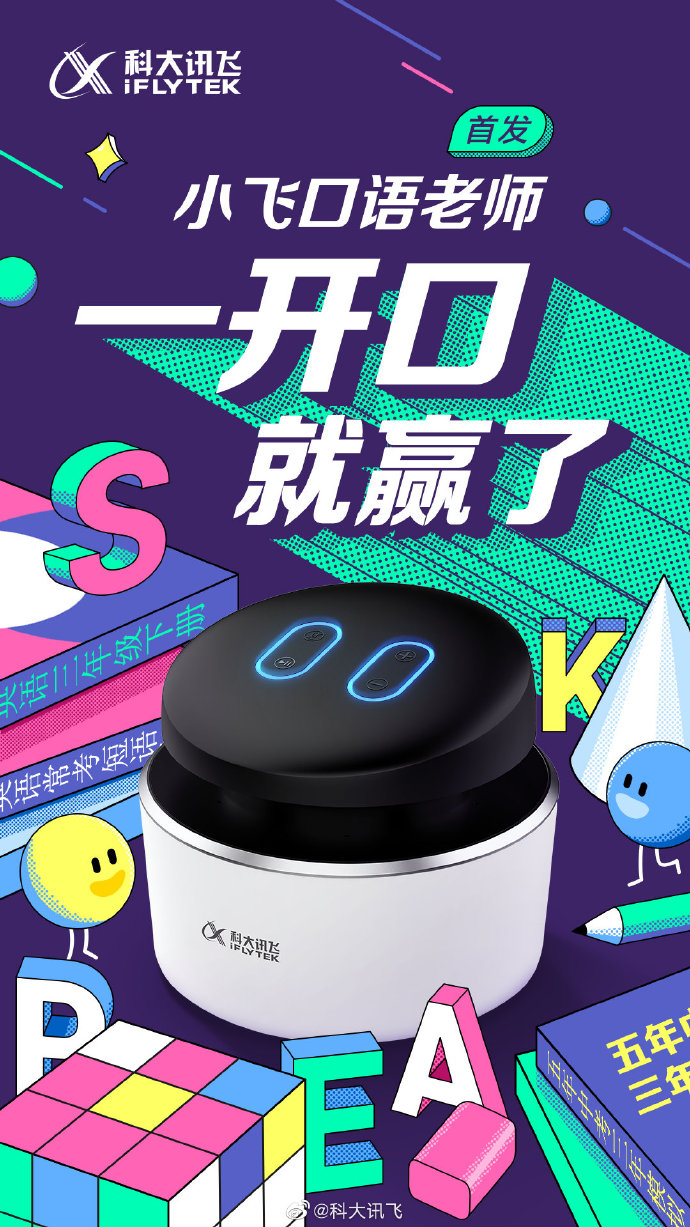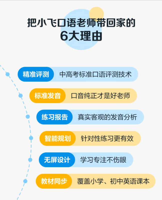 讯飞基于其语音识别评测与A.I.个性化精准学习的优势,于近日推出专注于英语口语学习的学习机小飞口语老师,开启智能口语学习新时代。